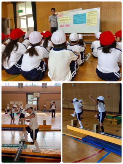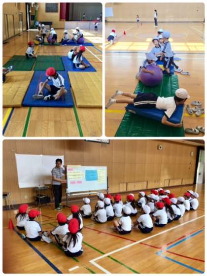 1年1組の体育を参観しました。課題解決学習に取り組んでいます。