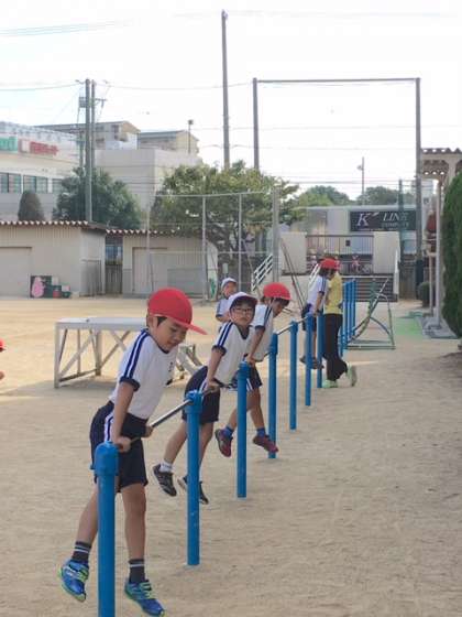 2年2組が体育の学習で鉄棒に取り組んでいます。