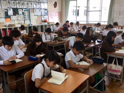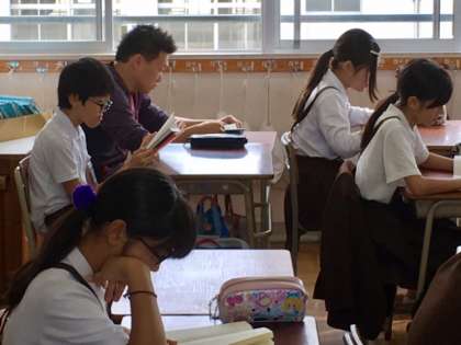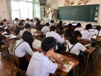 6年2組の読書タイムです。子どもたちは自読しています。担任の坂田先生がいない!?と思ってたら、子どもたちに混じって本を読んでおられました。