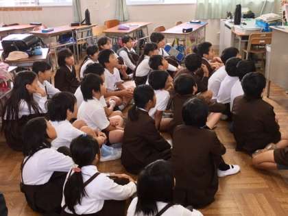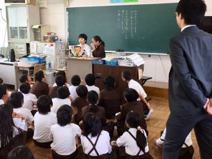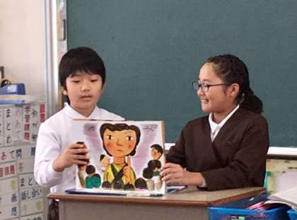 おやおや、いつもと少し雰囲気が違います。4年2組といえば紙芝居、紙芝居といえば鈴木先生なのですが、今日は紙芝居を児童が読んでくれています。きっとよく練習したのでしょう。とても上手に読んでくれています。