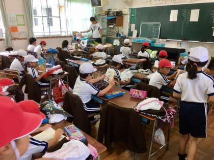 2年1組の読書タイムです。1時間目が体育なので、体操服に着替えて学級文庫から本を読んで自読をしています。