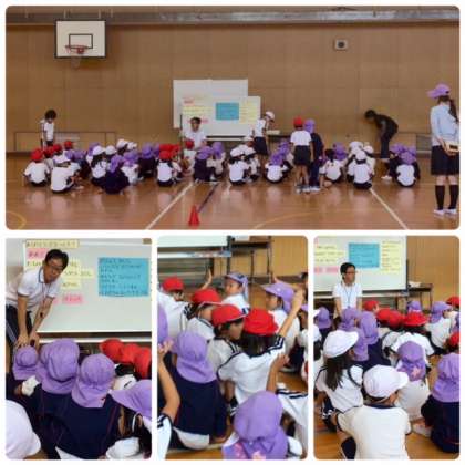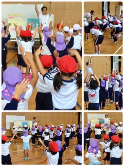 すべての運動を終えて集合します。整理運動をしてまとめの時間に入りました。
