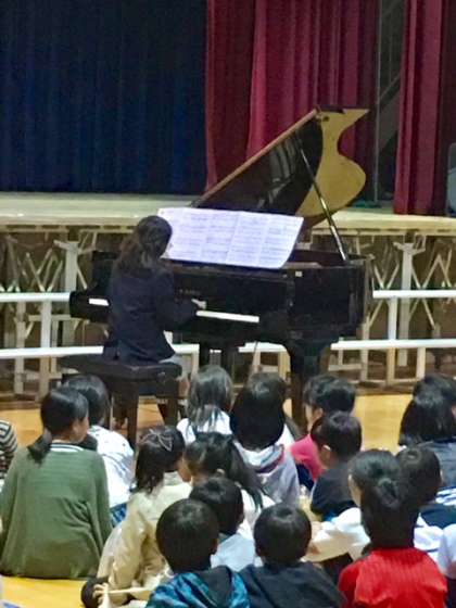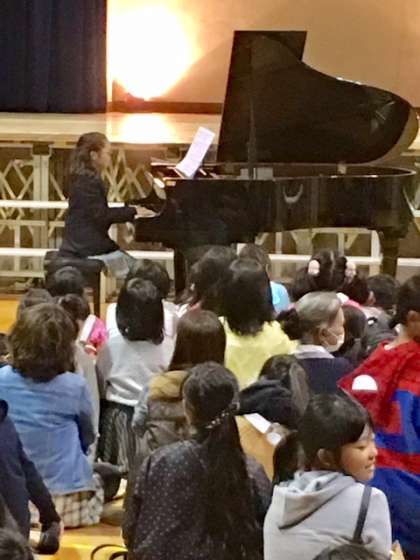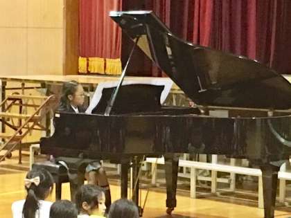 4番目は、4年生の辻英恵さんのピアノ独奏です。昨年度に続いて演奏してくれました。