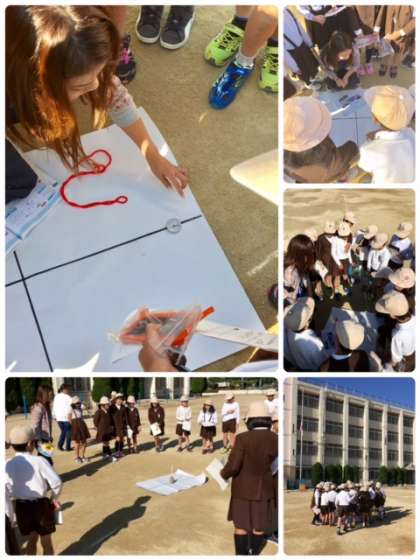 1時間目、3年2組が理科の実験をしていました。ペットボトルで日時計をつくり太陽の勉強です。