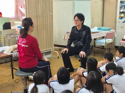 4年2組が発育測定で保健室に来ました。体重測定の前に、西嶋先生と鈴木先生が、ピアサポート上手な話の聞き方について、実演して教えてくださいました。