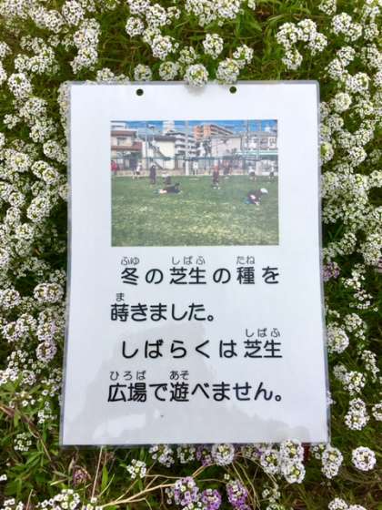 芝居広場も衣替えです。冬芝の種を蒔きました。しばらくは芝居広場で遊ばすに冬芝の成長を見守ります。