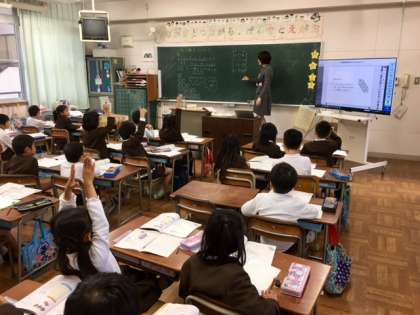 2年生も大型ディスプレイを活用して授業しています。