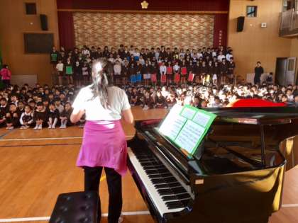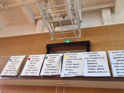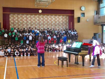 今朝のなかよし集会は「学習発表会」の歌の練習をします。