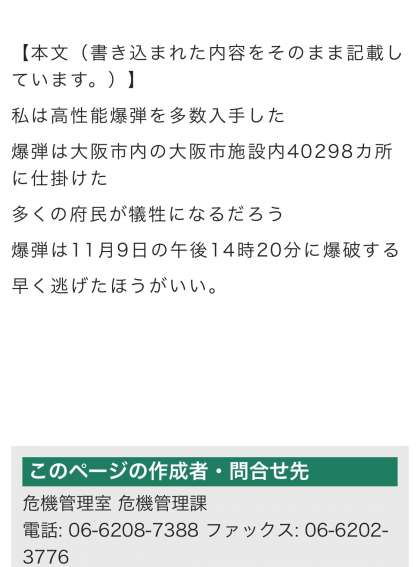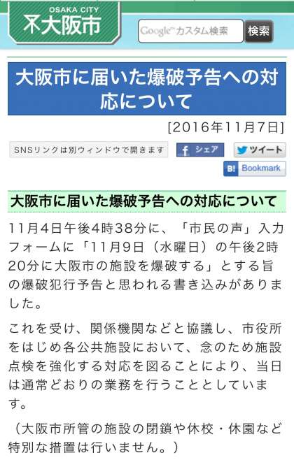 大阪市に届いた爆破予告についての大和田小学校の対応について