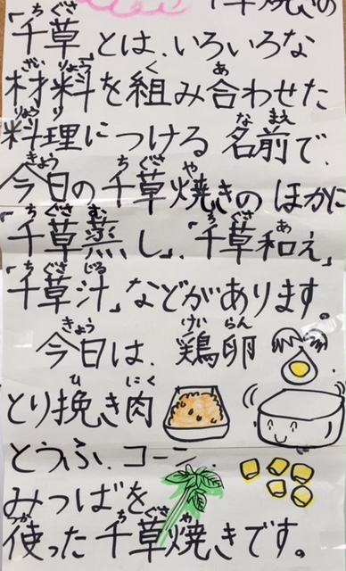 今朝は今年一番の冷え込みですと天気予報で聞きましたが、子どもたちは元気です。給食室で調理している、すまし汁の大鍋からは湯気がもくもくと立ち昇っていました。