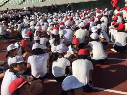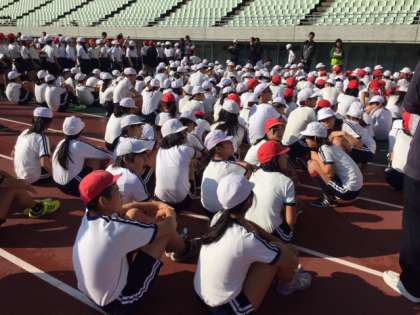 6年生は、青空の下、長居キンチョウスタジアムでスポーツ交歓会に参加します。ベストを尽くして頑張ります。