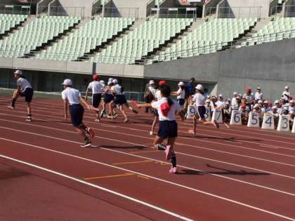 100m走が終わって、400mリレーです。大和田頑張ります。