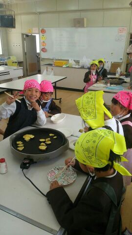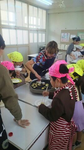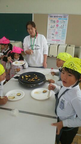 このおいもパーティーには、担任の先生だけでなく、保護者ボランティアの皆さんや、栄養教諭の岡山先生、支援員の藤浪先生も応援にかけつけてくださいました。
