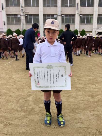 児童朝会では、賞状の伝達もありました。2年生の稲福 渉さんが消防図画で、5年生の澤山春佑さん、宮脇隆之介さんが、大阪市学校図工展で賞状をいただきました。