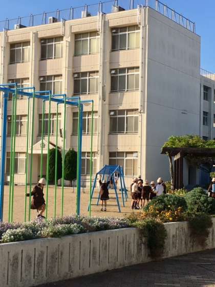 寒さなんか、へっちゃら。1年生は朝から運動場で遊んでいます。