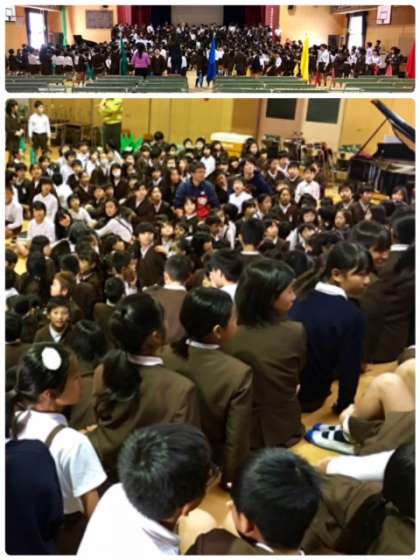 すべての児童が講堂に集まり「大和田小学校の歌」を練習しました。いつもの練習では、音楽主任の藤田先生のピアノ伴奏で歌っていましたが、今回はなんと大和田小学校の先生方がバンドを組んで伴奏してくださいました。