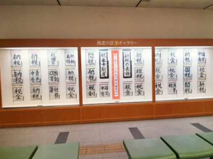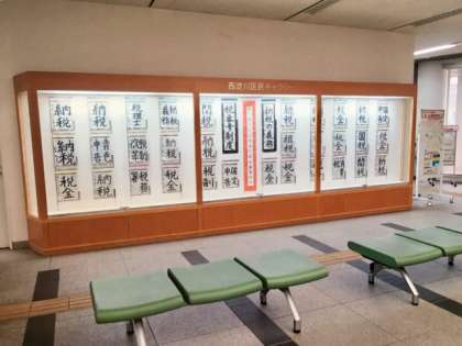 月曜日の児童朝会でもお話しましたが、本校児童の習字作品が西淀川区役所1階ホールの西淀川区民ギャラリーに展示されています。