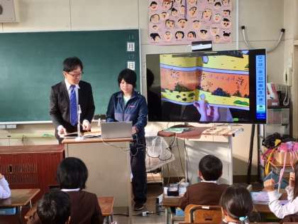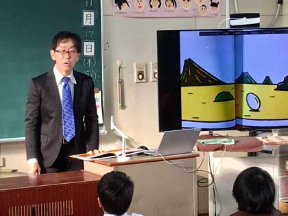 1年2組の読書タイムです。今日は小山教頭先生が来てくださいました。