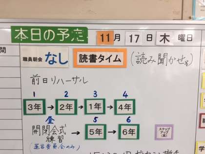 明日は学習発表会ですが、読書活動はご覧のように学校をあげてすすめています。ご家庭でもお子様と一緒に、読書の秋を楽しんでください。