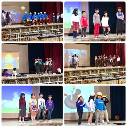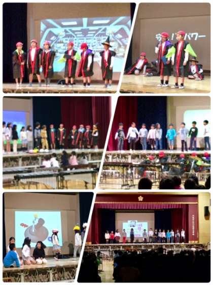 先ほどの4年生と同じく、ICTを活用して舞台正面に背景を映し出して、劇の内容をよりわかりやすく表現してくれていました。