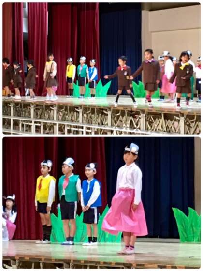 1年生は「ねずみの結婚」の劇を発表してくれました。大和田小学校に入学して8か月を迎えたのですが、セリフをしっかり覚え大きな声で言えました。