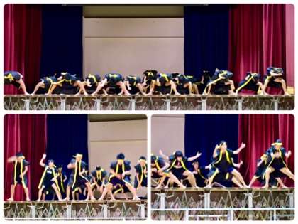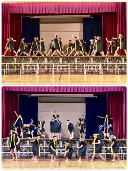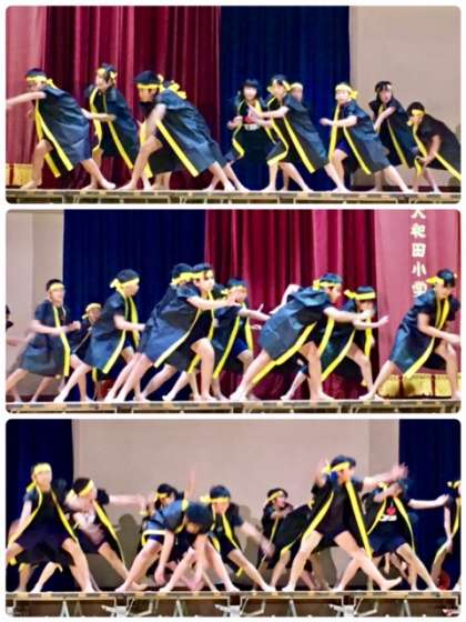 5年生の発表の最初は、「南中ソーラン」です。例年5年生は運動会でソーランを踊っていました。力強い踊りに圧倒されました。