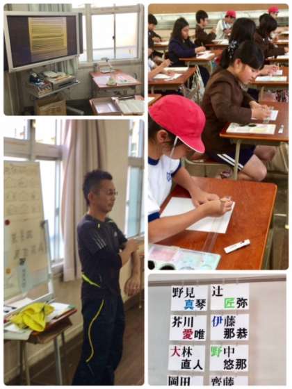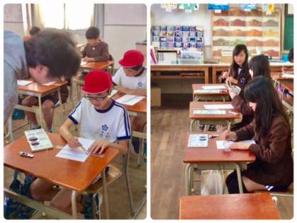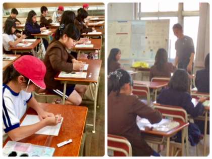 美術科の授業体験です。中学校の美術室には中学生の作品も掲示されています。