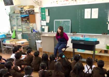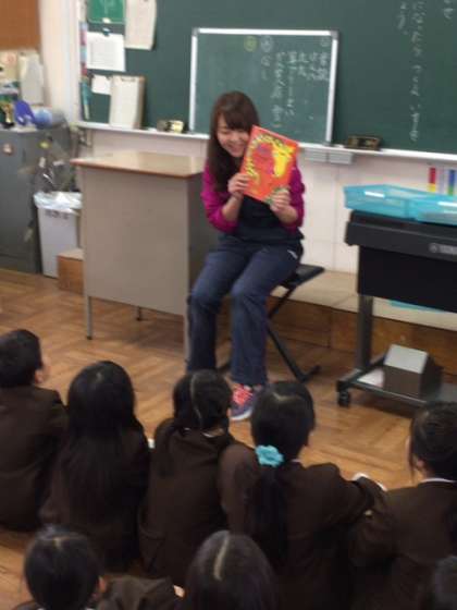 2年1組の読書タイムです。今日は5年生担任の福間先生が読み聞かせをしてくださいました。