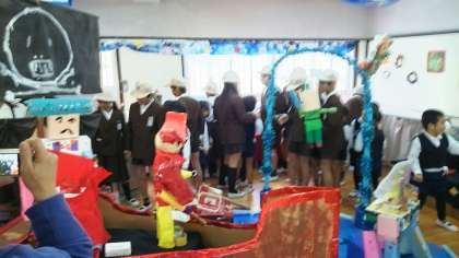 5年生の児童が、大和田幼稚園の作品展に招かれて行ってきました。