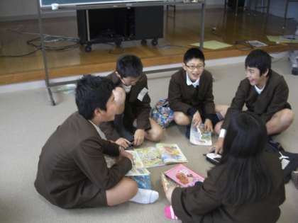 3学期が始まって初めてのモリソン先生の授業!今日は、桃太郎のチャンツを行ったあと、桃太郎に負けないオリジナルストーリーを英語で考えました。後々、これを劇にしていきます。どうなるか楽しみですね!