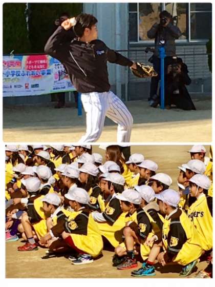 野球シーズンオフで、全力投球ではありませんが、高橋投手が投げるボールが梅野捕手のミットに吸い込まれる度に、子どもたちからは「オー!」と歓声が上がりました。