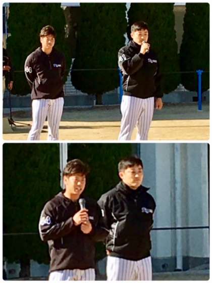 高橋投手からは「中学校、高校の時代には野球に熱中していました。夢を持って一生懸命努力したらプロ野球の選手になれました。」と話されました。どんなことも、好きになり努力を続けることが夢を叶える力になるのです。最後は、大和田小学校の児童全員と握手で記念写真を撮りました。