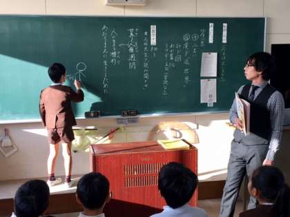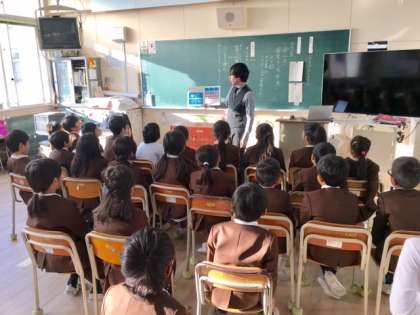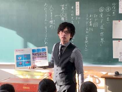 人権週間にふさわしく「世界人権宣言」という本を読んでくださいました。三好先生の問いかけに、児童が黒板に書いて人権について説明していました。