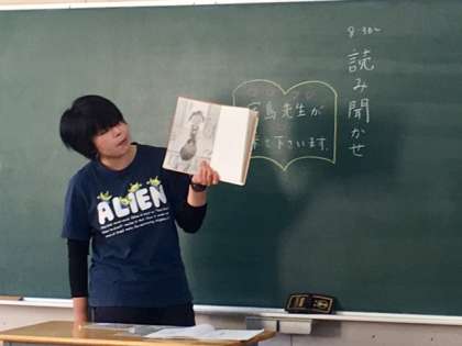 6年1組の読書タイムです。今朝は1年生の守島先生が読み聞かせに来てくださいました。