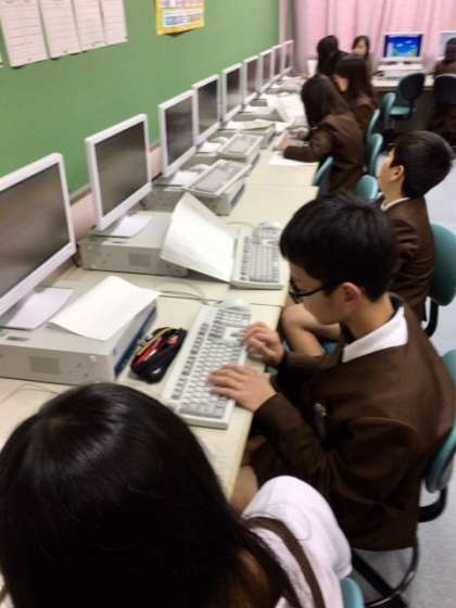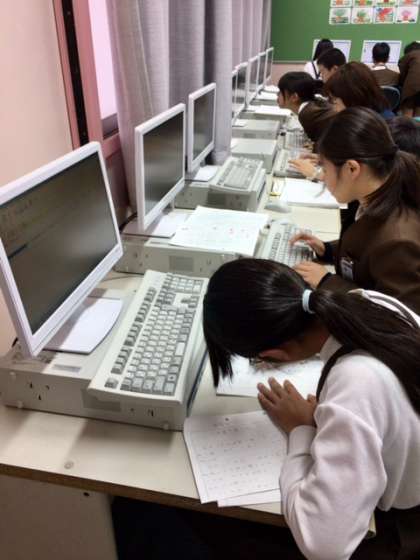6年2組の児童はパソコン室で学習しています。小学校での思い出を原稿用紙につづり、パソコンで清書して卒業文集の原稿にするそうです。