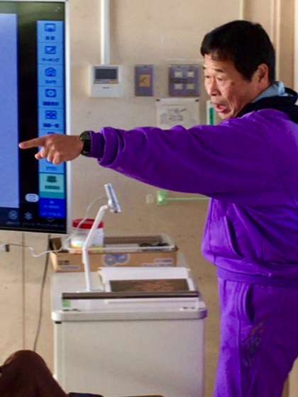 写真は大西先生が厳しそうに写っていますが、子どもが叱られているのではありません。シャッターのタイミングが悪いのです。(念のため(??ω?? ) )大西先生は、実に表情豊かに子どもたちに話しかけられています。