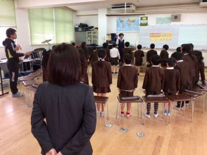 今日は3年生、4年生で大阪市教育センターから出口みか指導主事をお招きして音楽科の研究授業をしています。4時間目は三好先生による3年1組の研究授業です。