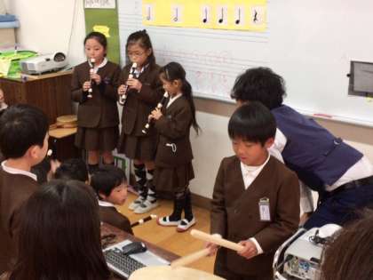 授業の途中で、小発表会がありました。とても良い旋律が出来ています。
