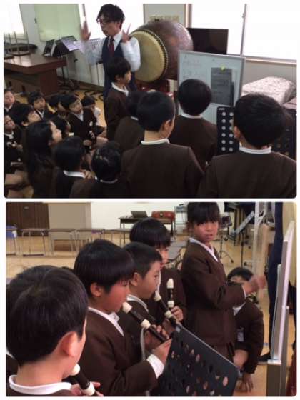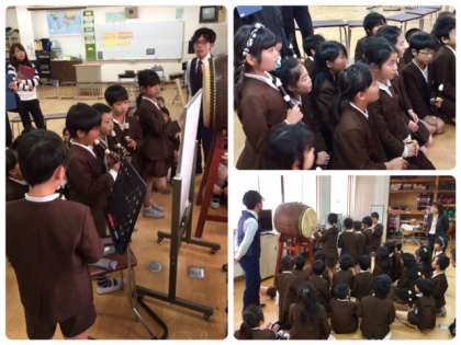 再び、グループでの活動を行ったうえ、授業の最後に代表グループの発表を、みんなで聞きました。このグループもとてもいい旋律づくりができています。