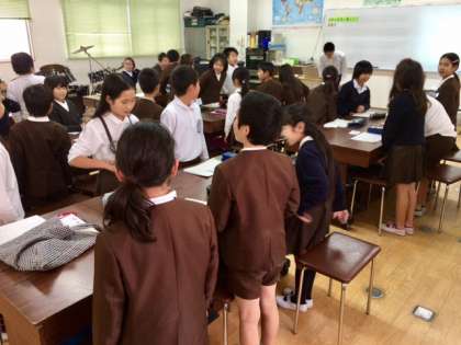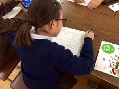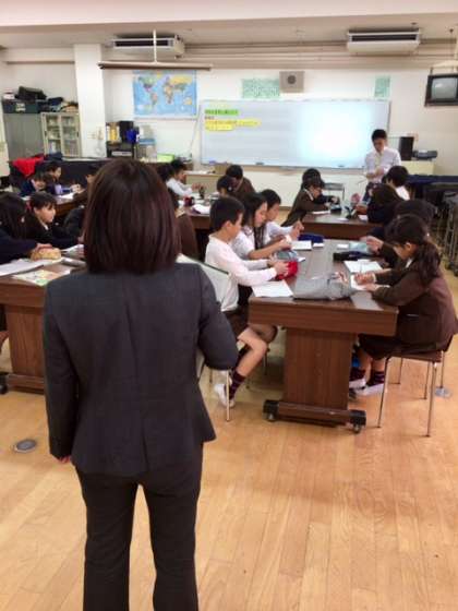 4年1組の5時間目は音楽の研究授業です。この時間も大阪市教育センターから出口みか指導主事先生をお招きして行います。