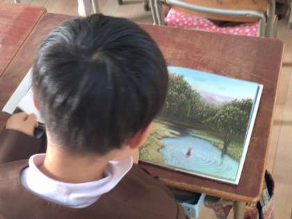 先生がプリントを配付してくれている間も、読書をして静かに待っています。
