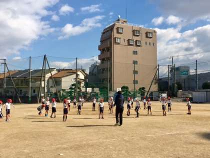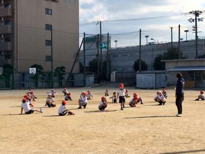 2年2組の子どもたちが運動場で体育の授業を受けています。子どもたちは「寒くなんてないさ!」と元気になわとびを頑張っています。