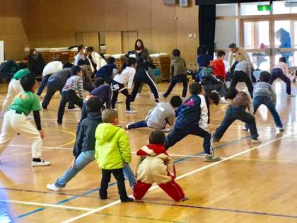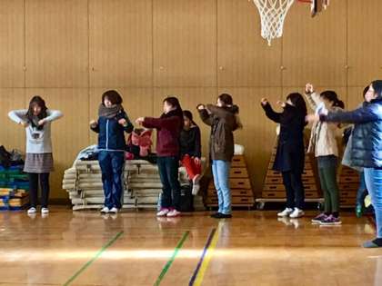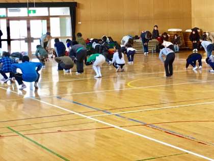 子どもたちも、お母さん方もストレッチをして身体を温めます。