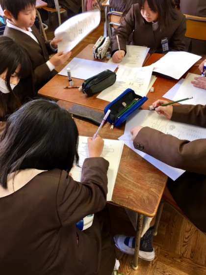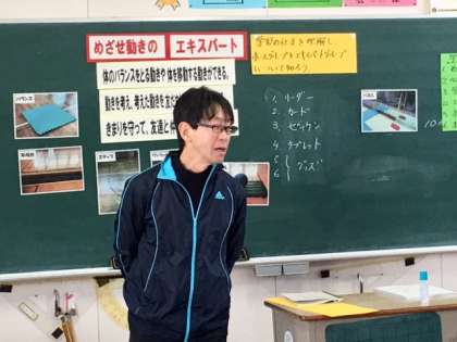 4年2組の体育は、教室で、行われています。今日は、小山教頭先生と担任の鈴木先生とのティーム・ティーチングで「めざせ、動きのエキスパート」と題した授業を受けています。課題解決をめざした授業で、それぞれがグループで話し合いながら目標を立てます。