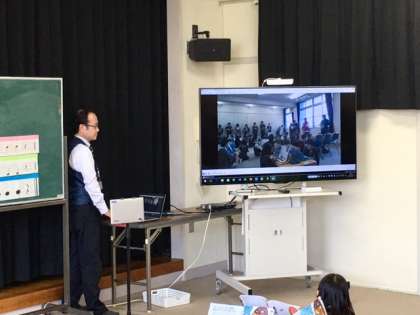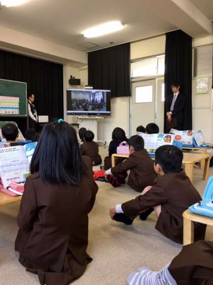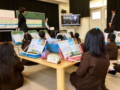 はじめての三重奏をタブレットパソコンで録画して、自分たちで振り返ります。