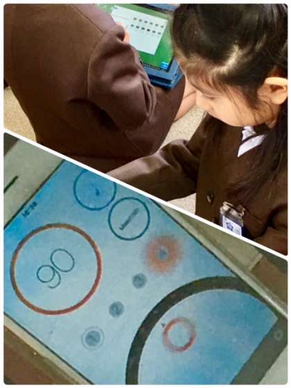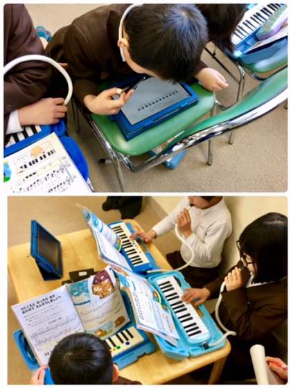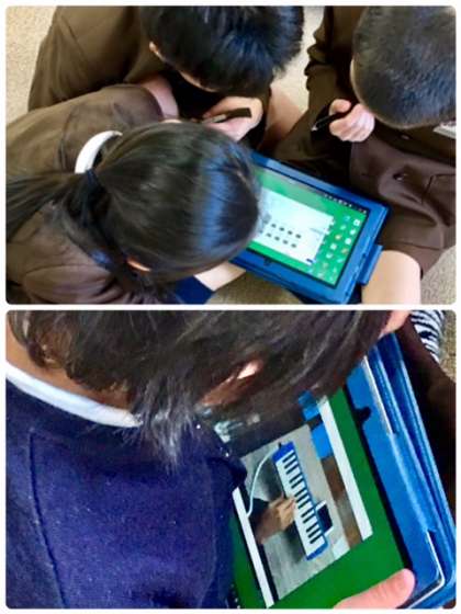 タブレットパソコンを使って、小グループで練習しています。