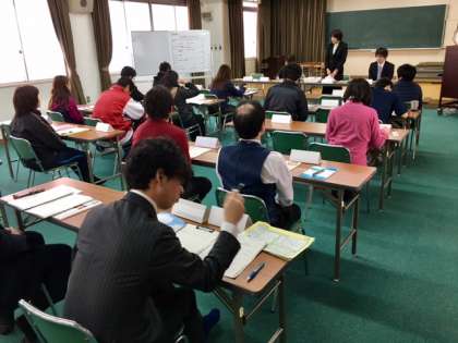 今日の、研究授業を振り返り研究道議会が始まりました。指導・講評は引き続き、大阪市教育センター音楽担当指導主事 出口みか先生にお越しいただきました。