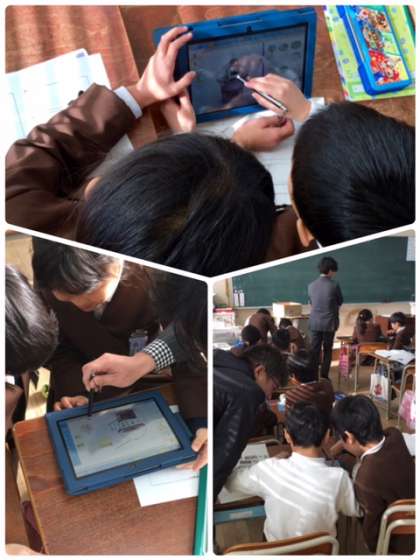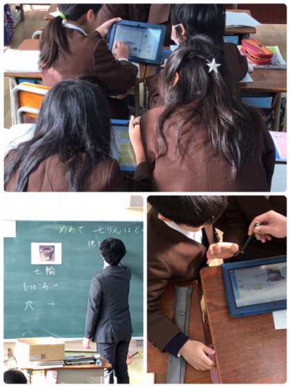 3年1組の社会「昔のくらし」の学習です。ITC機器を活用したり、実物を見たりして昔のくらしを学習しています。