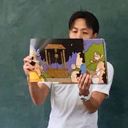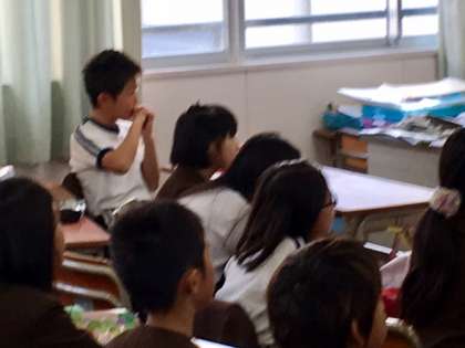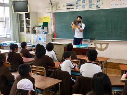 4年1組の読書タイムは、担任の石倉先生の読み聞かせです。子どもたちはお話をしっかり聞くことが定着しています。