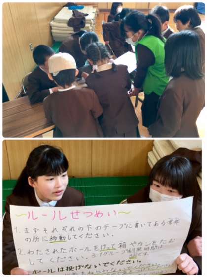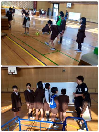 6年2組は、講堂で「キッキングスナイパー」をしてくれました。